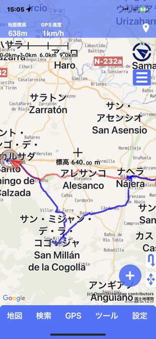 サンティアゴ巡礼10日目 St. Domingo de la Calzadaまで19km歩きました 本来のルートとSan Millan de la Cogolla経由のルートを示す pic.twitter.com/CB6WLD3iJH