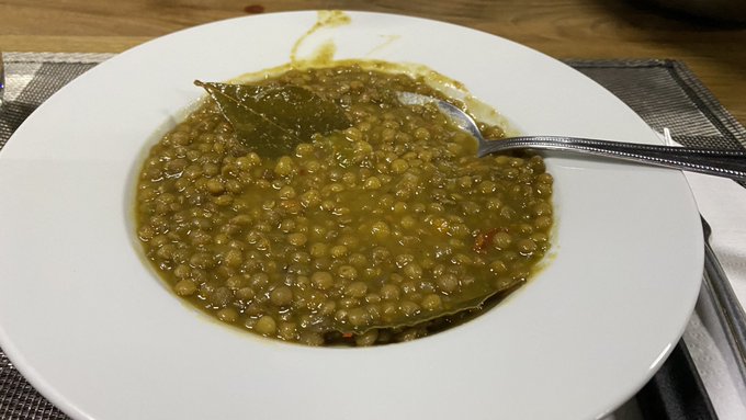 今日メヌー13€ アルベルゲの手作り 豆スープ、サラダ、トルティーヤ