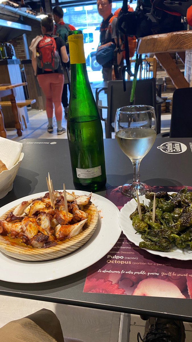 サンティアゴ巡礼33日目 Melideまで15kmを歩きました Melideのプルポ屋さんでプルポ たくさんの人と写真を撮りました 今日は飲みすぎたのてメリデ止まりで宿に入ります twitter.com/i/web/status/1… pic.twitter.com/qBOZLZrpsz